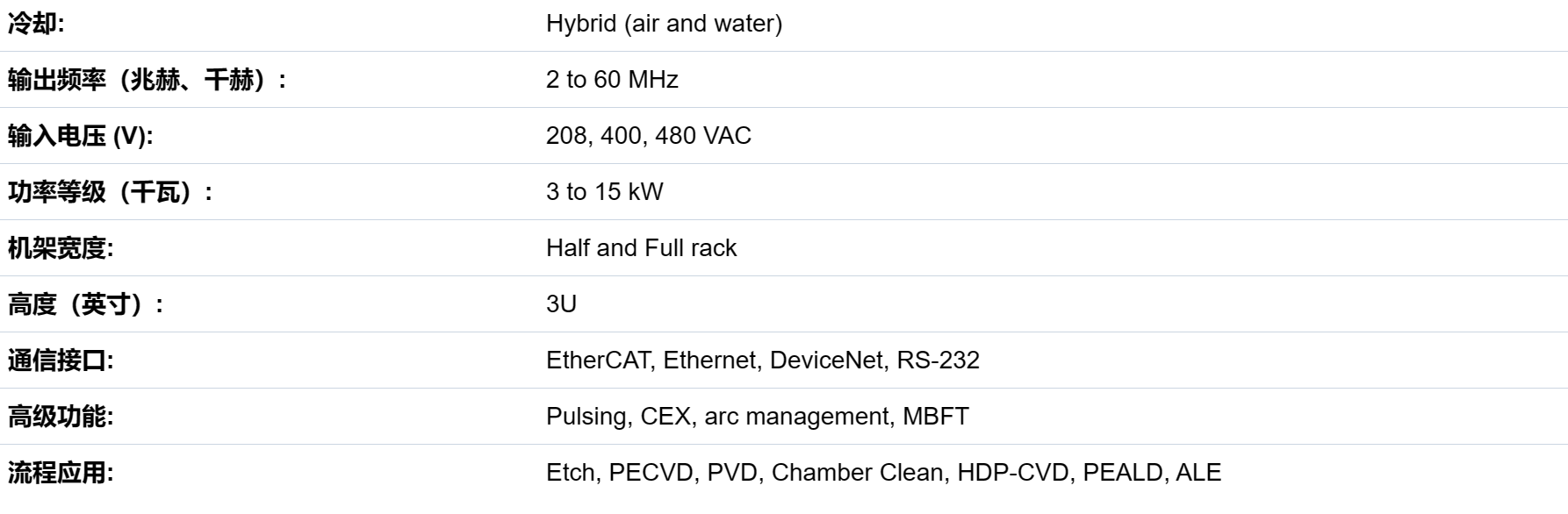 以新的运营灵活性为重点,推进流程开发。派拉蒙®高频射频发生器提供宽功率范围,支持多种集成场景,并配备标准串行/模拟接口和其他可选通信接口。派拉蒙HF能够实现高纵横比器件所需的高等离子体密度和离子能量,并加快半导体加工工具下一节点的加工速度。派拉蒙平台的数字架构提供了精确的电源管理,并简化了新功能集成,无需交付周期或硬件更改。通过对等离子体变化的实时检测实现了高功率输出和可重复的性能。内部保护限值便于可靠操作。