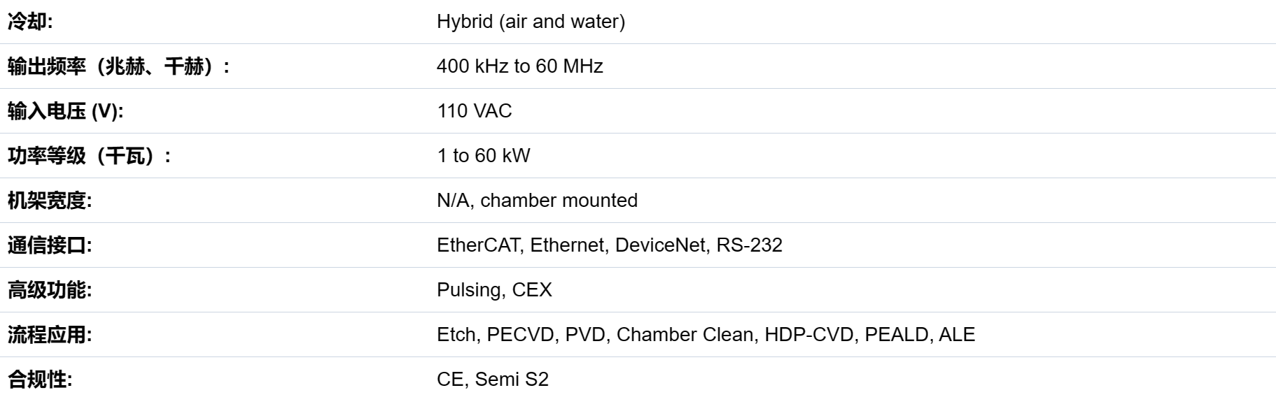 Advanced Energy 的匹配网络可在多个功率范围内实现快速、准确和可靠的匹配。提供即插即用型号或可配置机组,安装简便,可加快调谐并加强工艺控制。